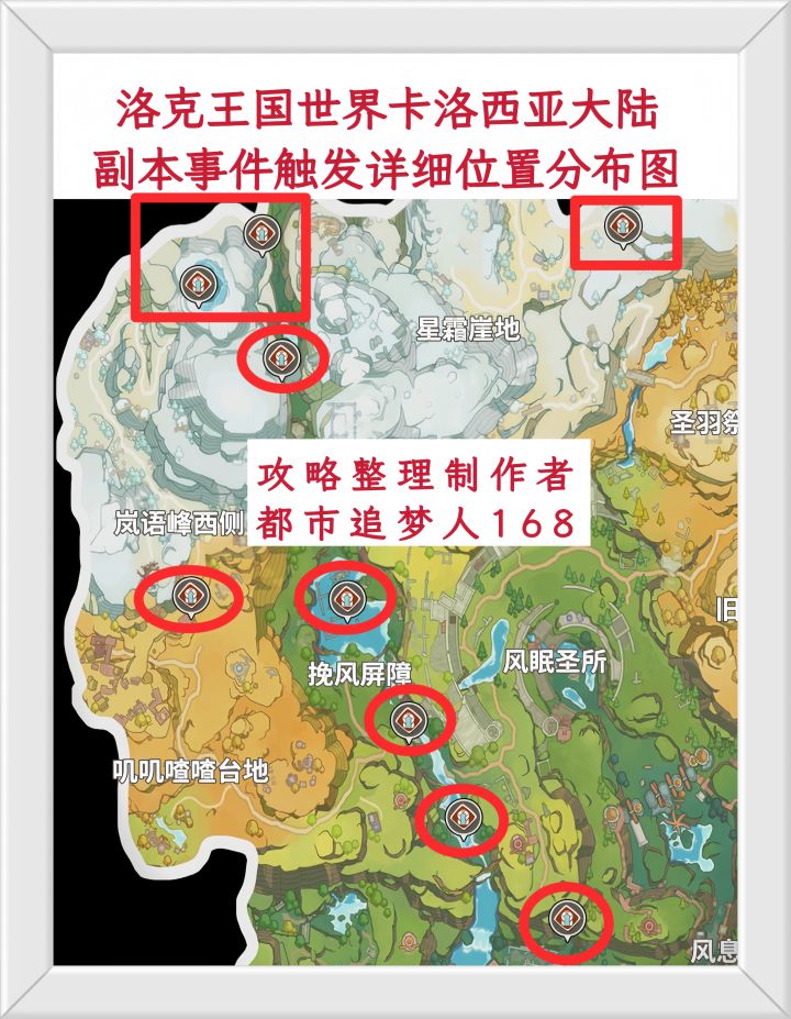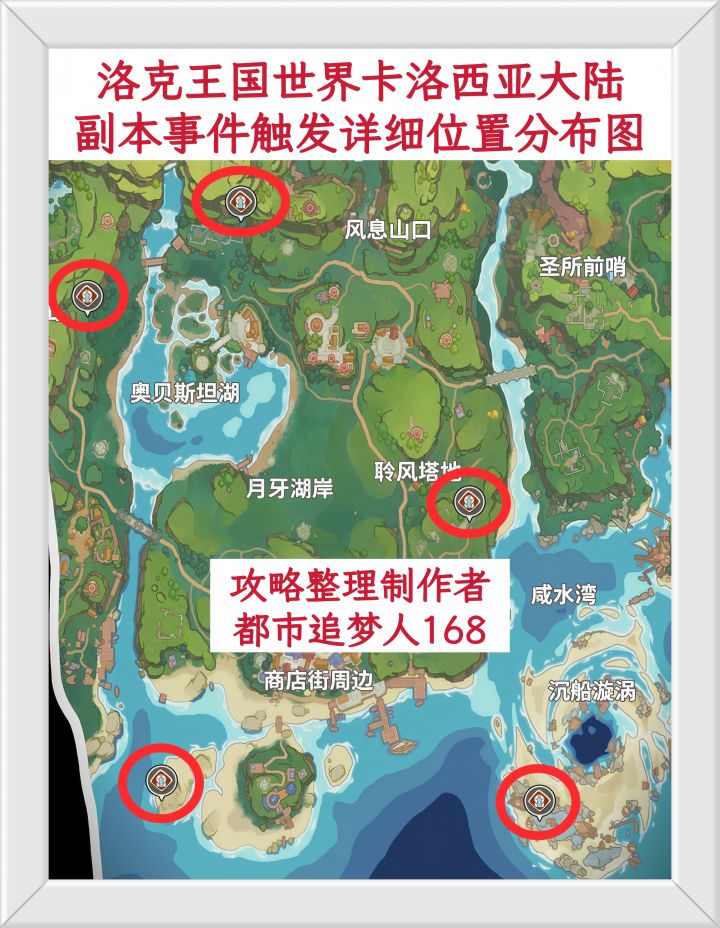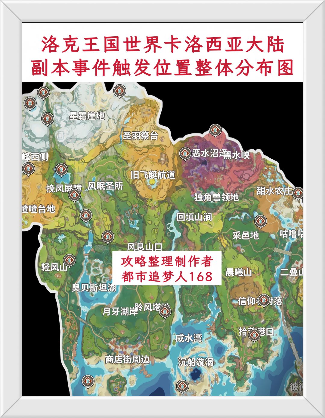 2:图四是洛克王国世界卡洛西亚大陆副本事件触发位置整体分布图。