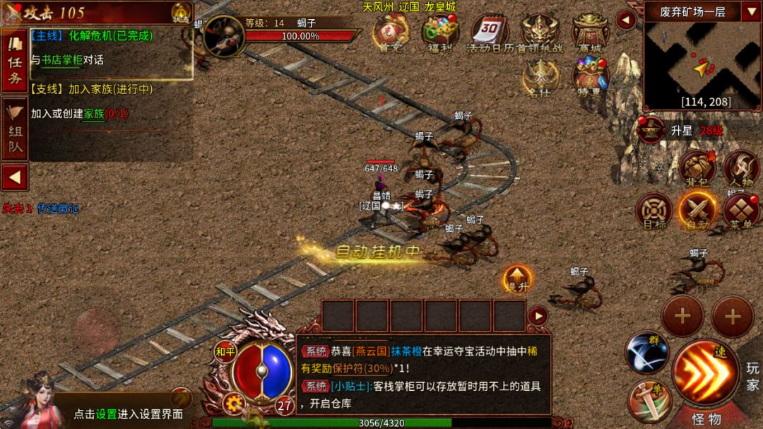 想要升级快前期跟着主线推进,顺便完成支线任务,就能解锁各种核心玩法,更快提升等级。到了 30 级之后,每日的粮草押运、国家环任务一定要做,给的经验特别多,镇守魔王、枯骨魔将这些副本也不要忘记,晚上去参与家族篝火、边境相关活动,升级速度更快,空闲时间开启野外或离线挂机,也能持续积累经验。