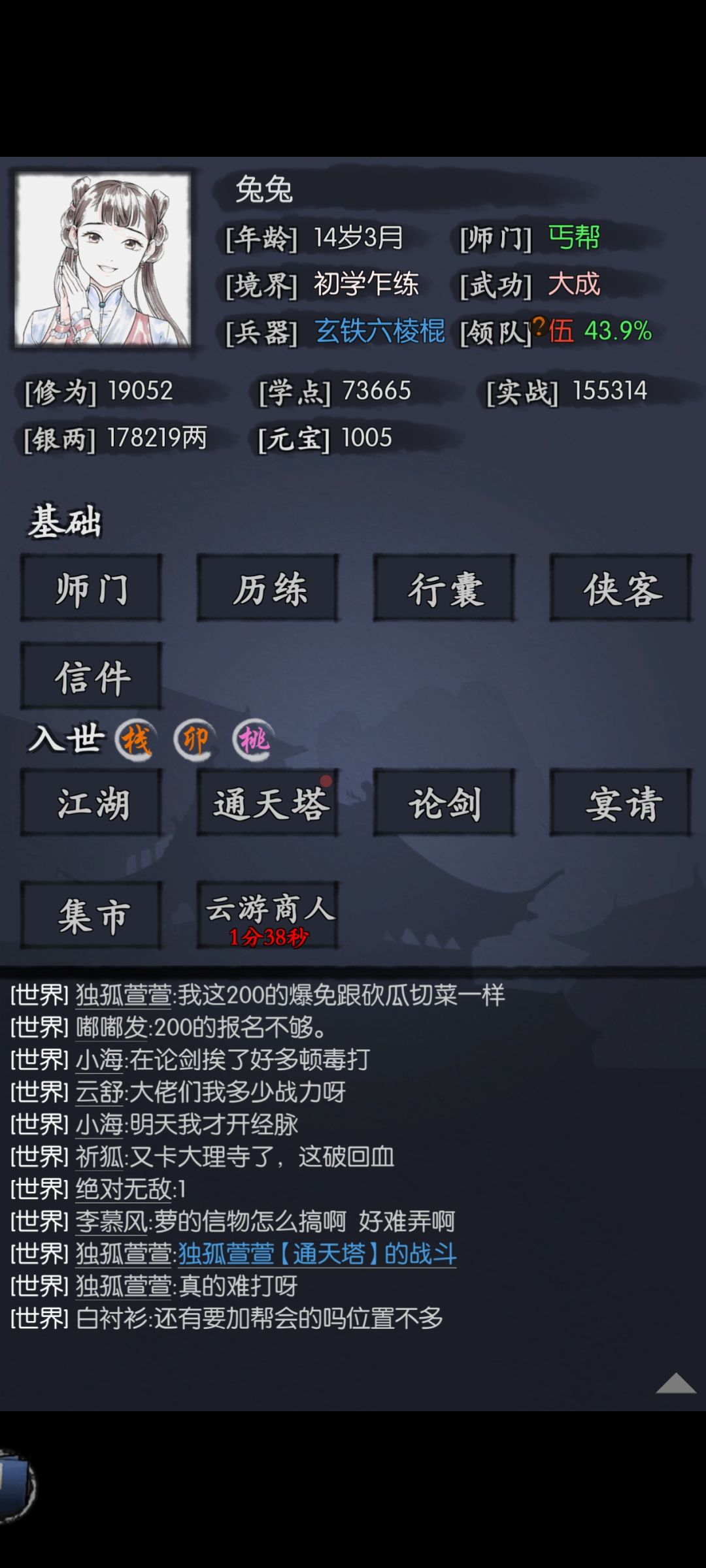晚上七点开始,按师姐女丐教程,拿拿江湖装备,挂在霸王剑历练,等领四。