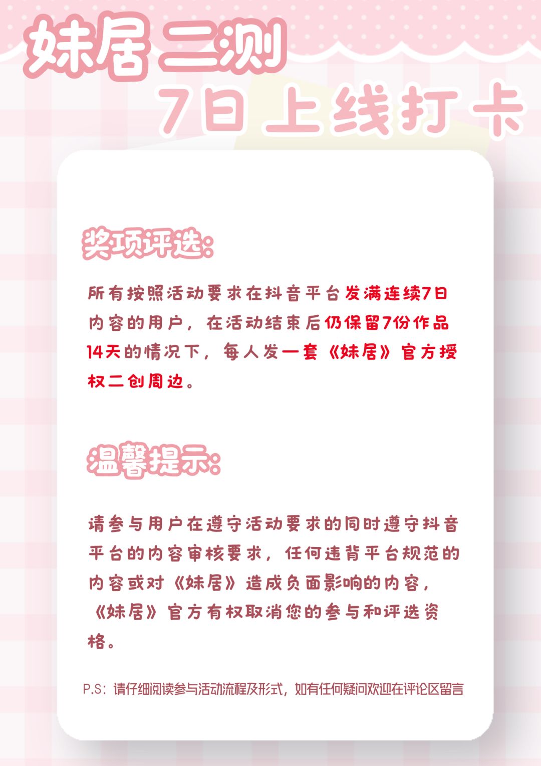 【二测打卡】《妹居》二测期间7日打卡活动