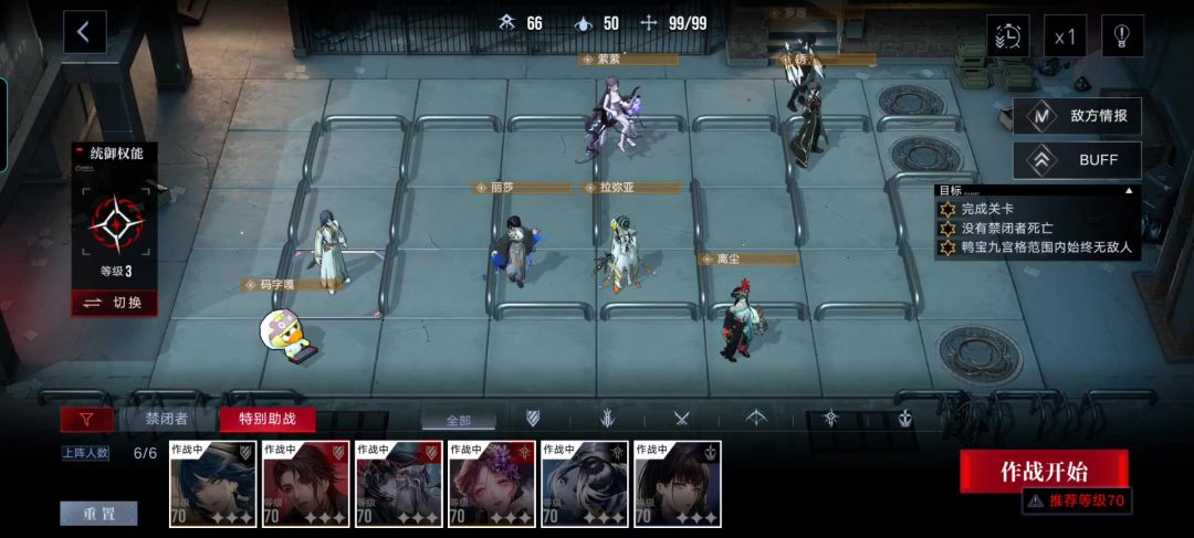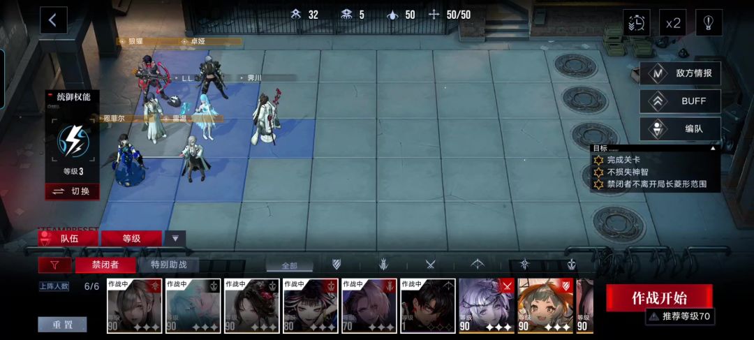 要点:这关只注意要及时把中间的精英怪秒掉不要让他靠近蓝色地格就行。其它怪及时控住就行。