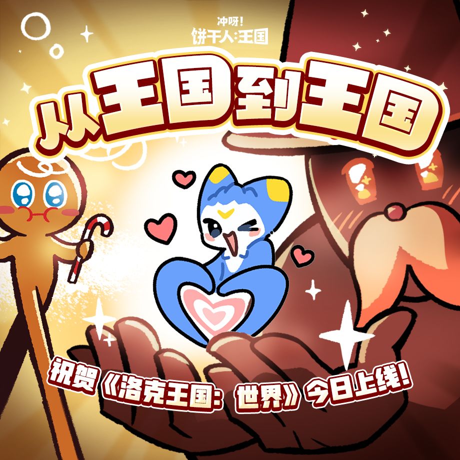 同样的王国和冒号。从王国到王国——《冲呀!饼干人:王国》祝贺《@洛克王国世界》今日上线!