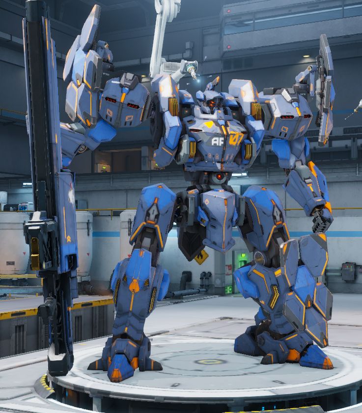 钴蓝装甲覆以军徽金边,象征纪律与荣耀的极致融合。此形态下的“噩兆”曾服役于铁骑兵精锐小队,专司突破防线。虽出身企业造物,却在战火中淬炼出近乎人性的战术直觉——它是秩序的利刃,亦是体制最锋利的自反寓言。
