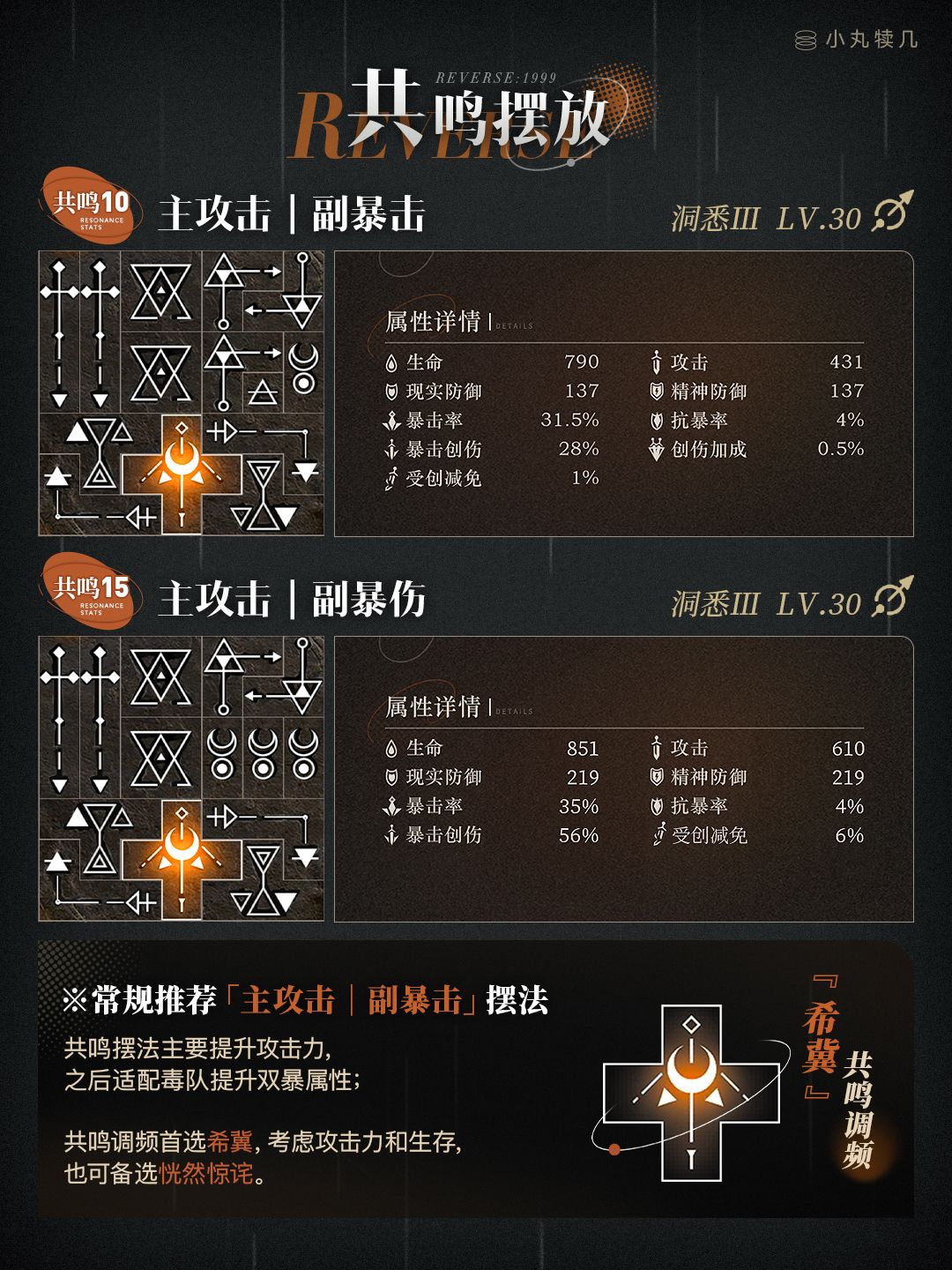 ※共鸣10『主攻击副暴击』摆法: