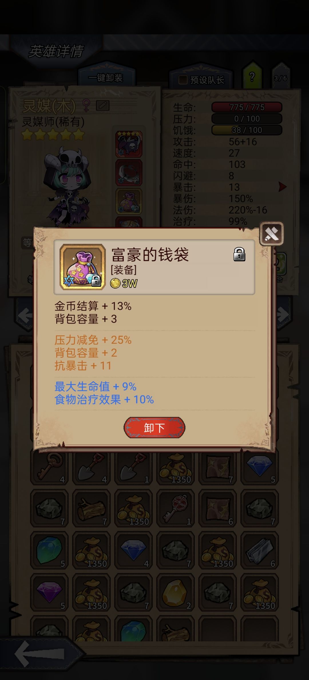 压力通过腰带来减压,或者大月卡,结算减50%,没有大月卡的也不用灰心,基本上,一个腰带75%减压,加个冷静就解决,不想打冷静特质,还有个钱袋子,也打个减压,包够的