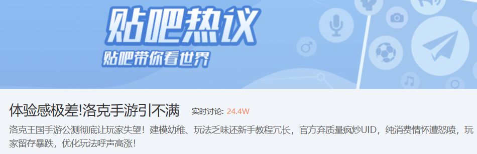 近日,“体验感极差!洛克手游引不满” 话题冲上热搜,这款承载无数玩家童年情怀的手游公测后口碑崩盘,引来大量玩家吐槽与不满。