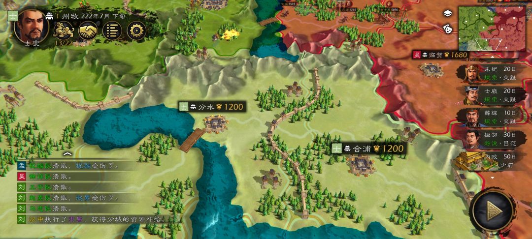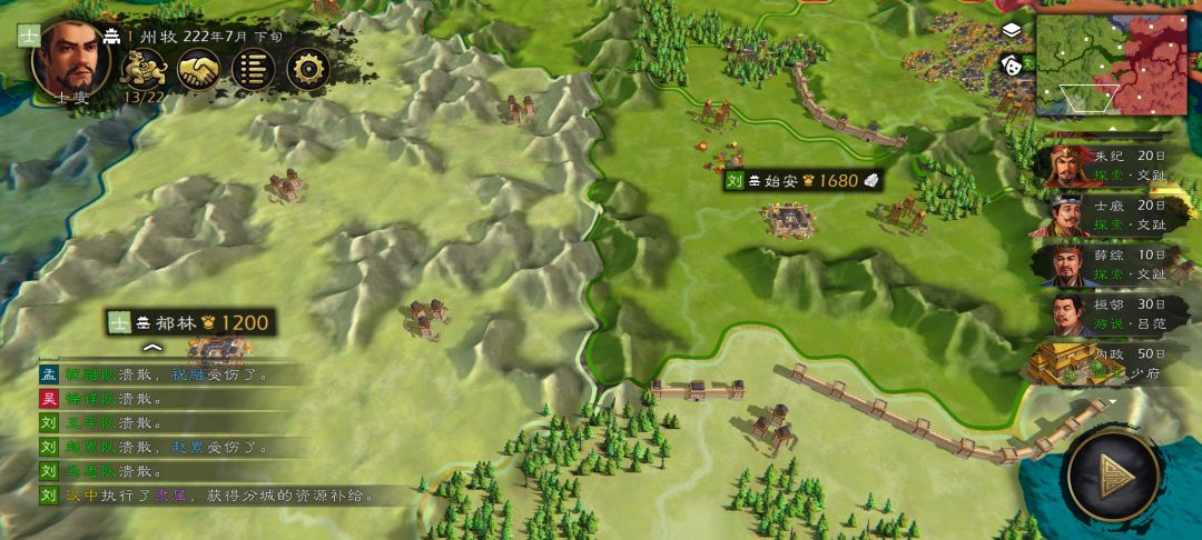 冠绝天下剧本,极限难度,士燮开局,不带附加武将,不开举贤,开局一堆废物,谁都打不过。直接莽塔墙科技,接着点酒馆开始疯狂游说,终于来了一个高武,可以去交州上面勾引零陵的出来捉将了