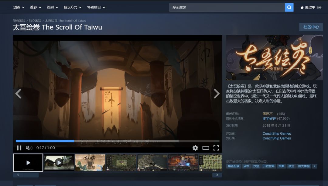 在2018年的9月,《太吾绘卷》以抢先体验的形式登录steam平台,并且成为中国游戏史上第一个登录Steam畅销榜的游戏。而到如今,游戏坚持更新近八年,全网销量超过300万份,在游戏史上或许确实也算得上一个出名的作品了。