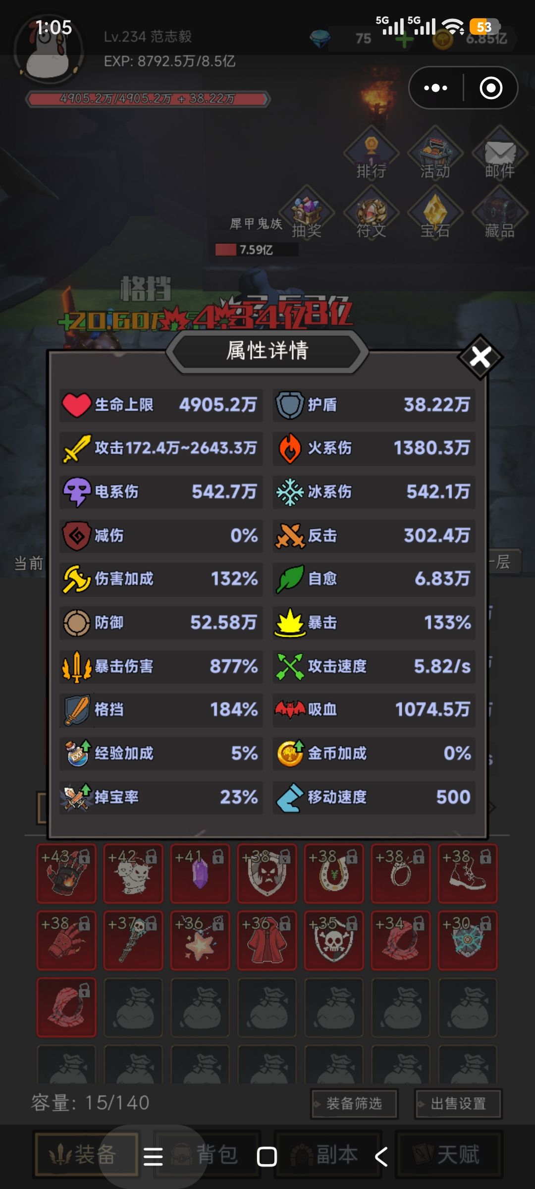 97血量包括攻速暴击还要继续堆高,目前4300只能下掉3分之2,没个五千多万估计是过不了,想出村还得一个月至少,挂到天荒地老。
