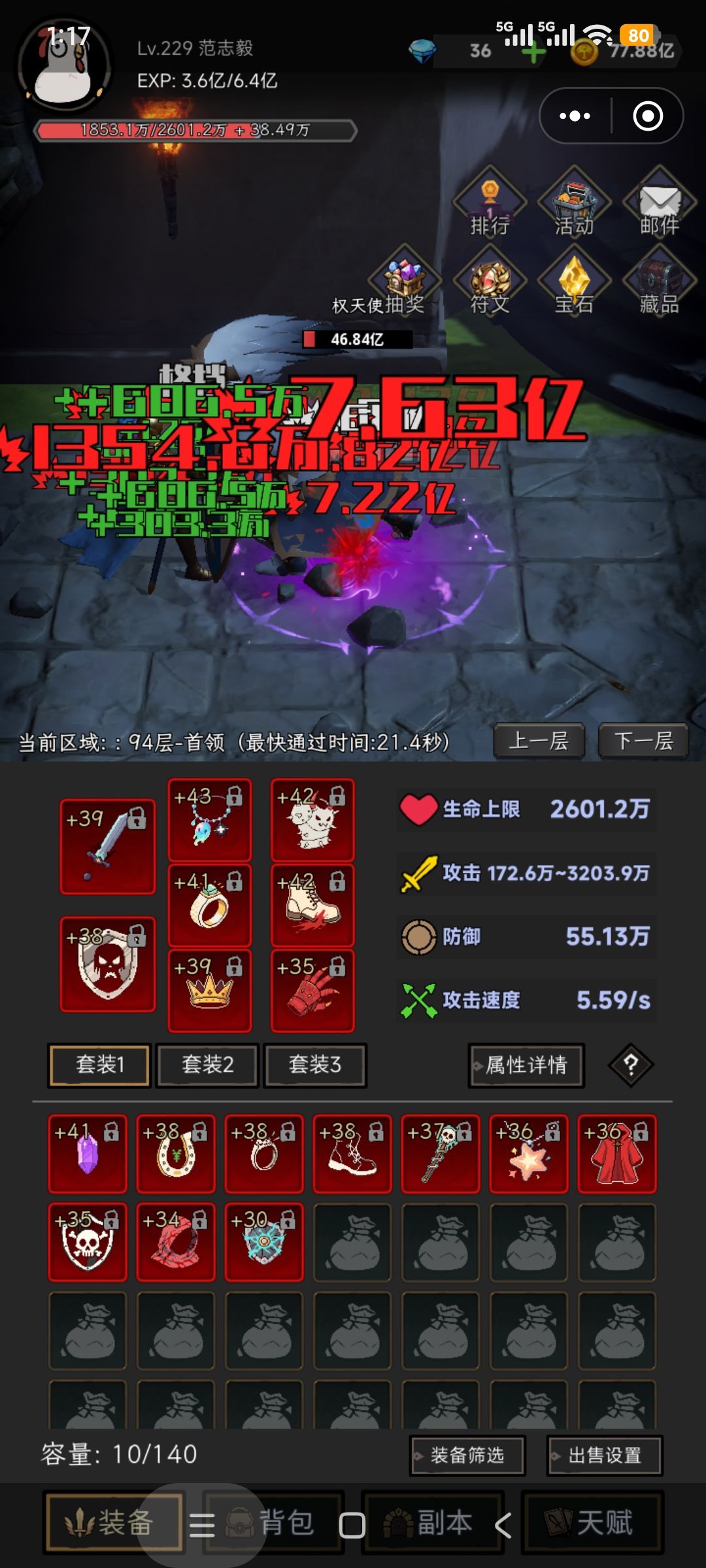 92卡了几天顺利过掉。87层6次改造的高成长魔化魂灵项链一条,藏品/秘宝神性一股脑全堆血,能加多高加多高。