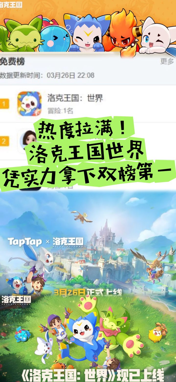 2026年3月26日由腾讯魔方工作室打造的国民经典IP续作《洛克王国:世界》全平台正式公测,上线后热度一路狂飙,成功斩获iOS免费总榜第一、好游快爆下载飙升榜第一,强势登顶双榜,成为当下游戏市场最具热度的现象级作品。