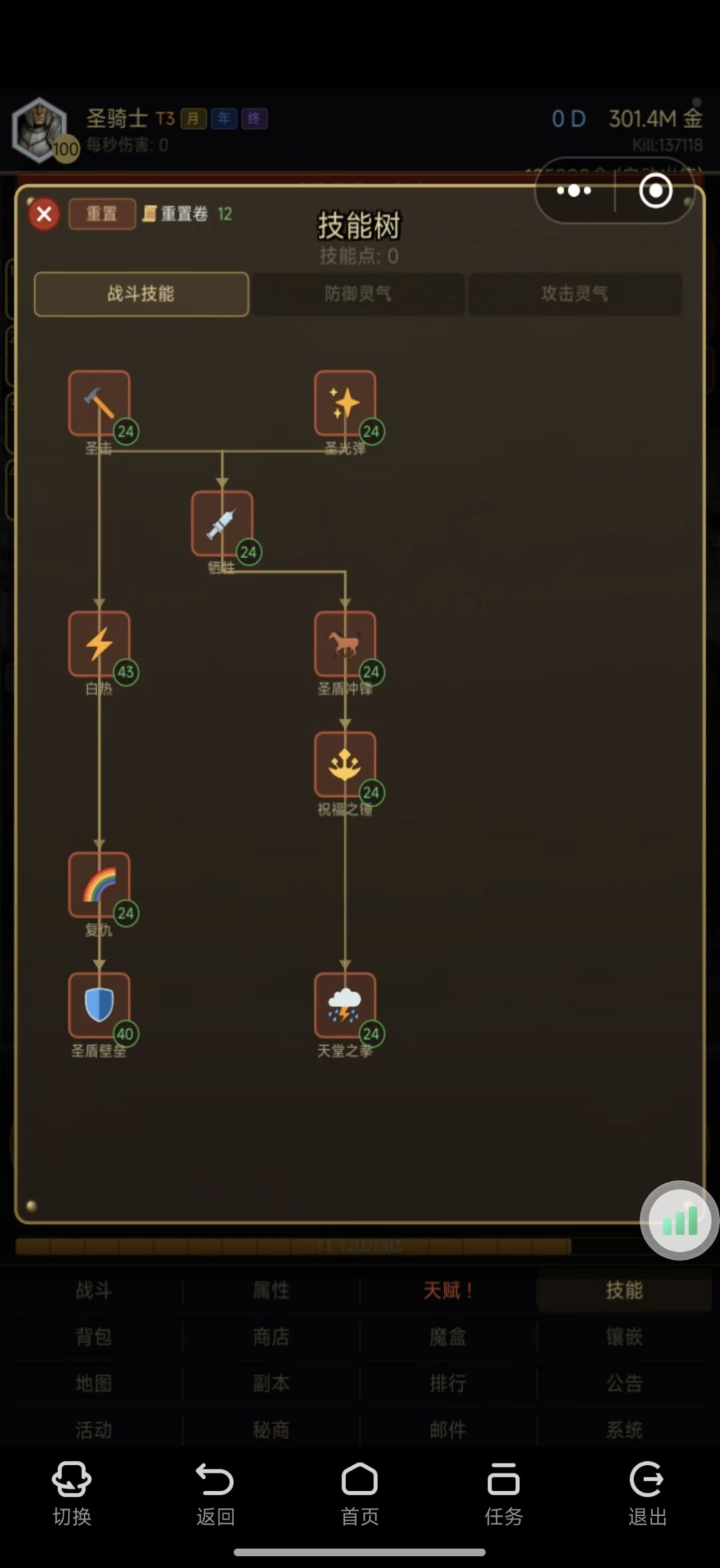 技能选择:白热/力量/狂信/圣盾or天堂