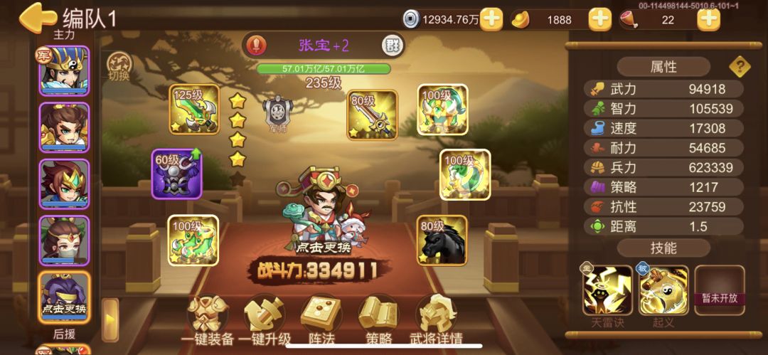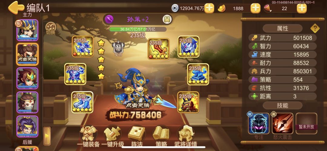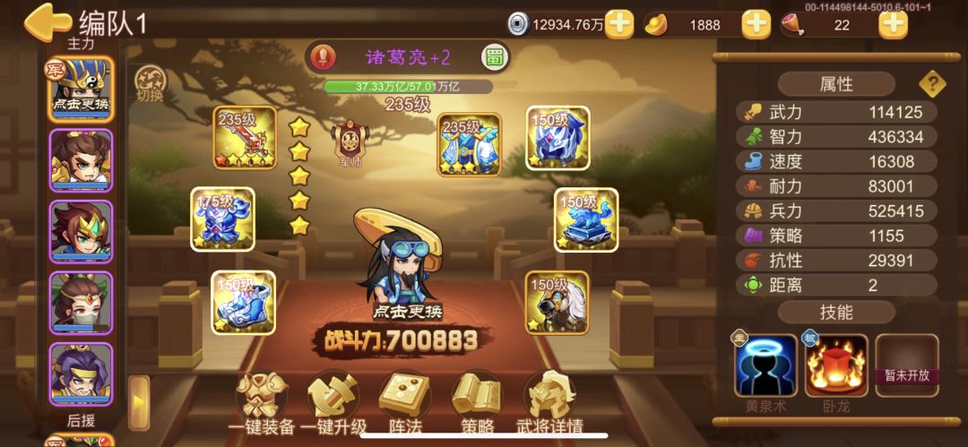 武将方面:目前两金 赵云 许褚;乐进差两元神金,苟或差三金。副本主力将基本加二够用,其他慢慢来吧;