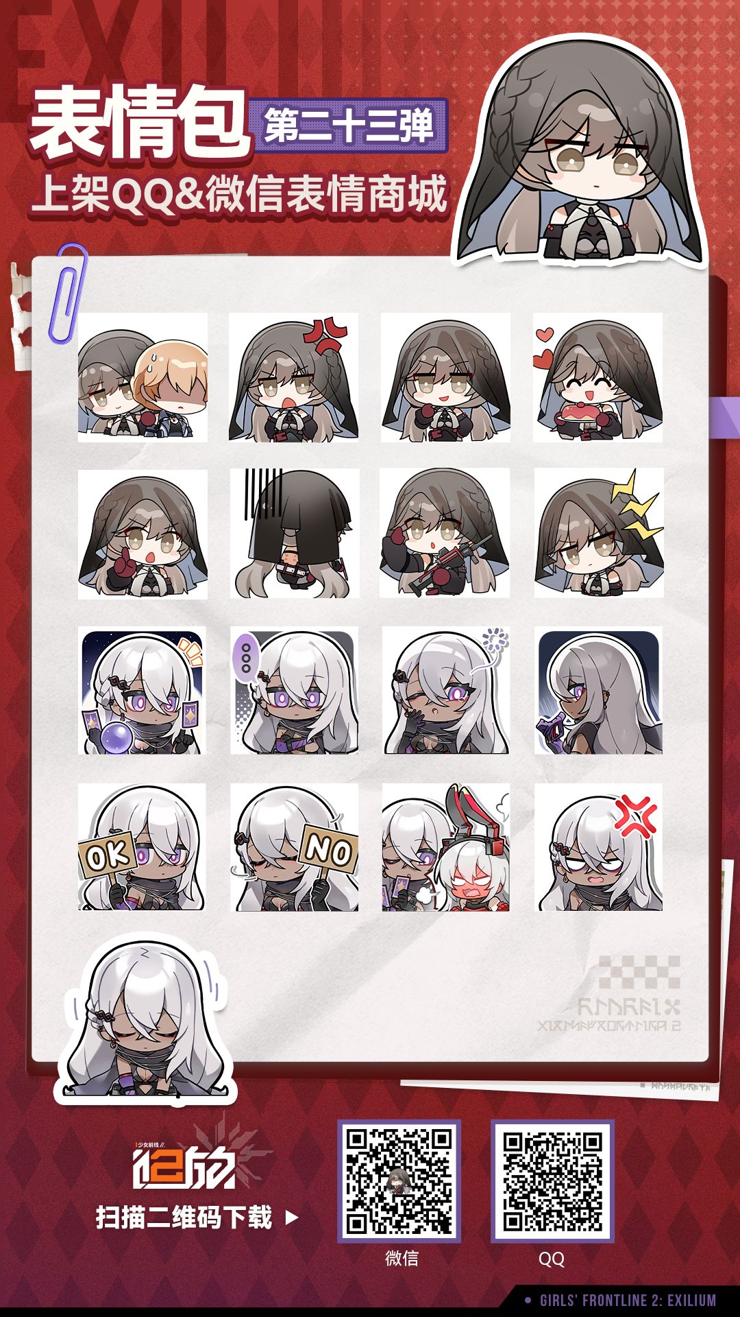尊敬的指挥官,《少女前线2:追放》第二十三弹表情包现已上架微信&QQ商城,欢迎指挥官下载使用!