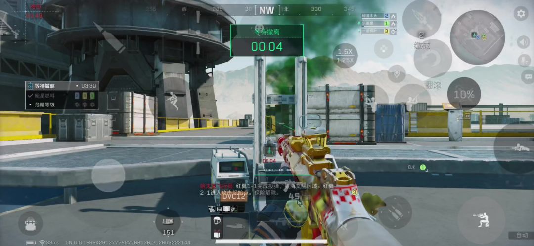复活在中控,直接过桥直奔总裁。接完任务后总裁一队过来轰技能,他们没硬追——可能是看我们没动总裁物资,判断为穷队/做任务的,懒得追。这队我们记为1队。