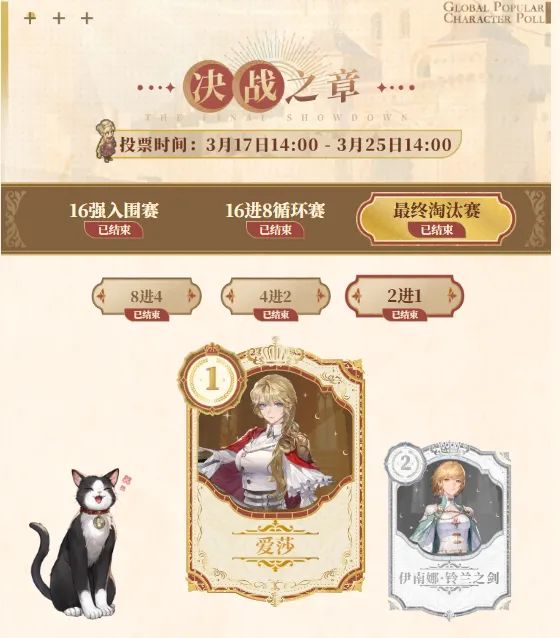 此次人气投票不仅展现了《铃兰之剑》角色塑造的多元魅力,更体现了全球玩家对游戏的热爱与支持。爱莎的爆冷夺冠,也让这一角色收获了更高的关注度,后续官方将推出的冠军专属内容,也成为众多玩家期待的后续更新重点。