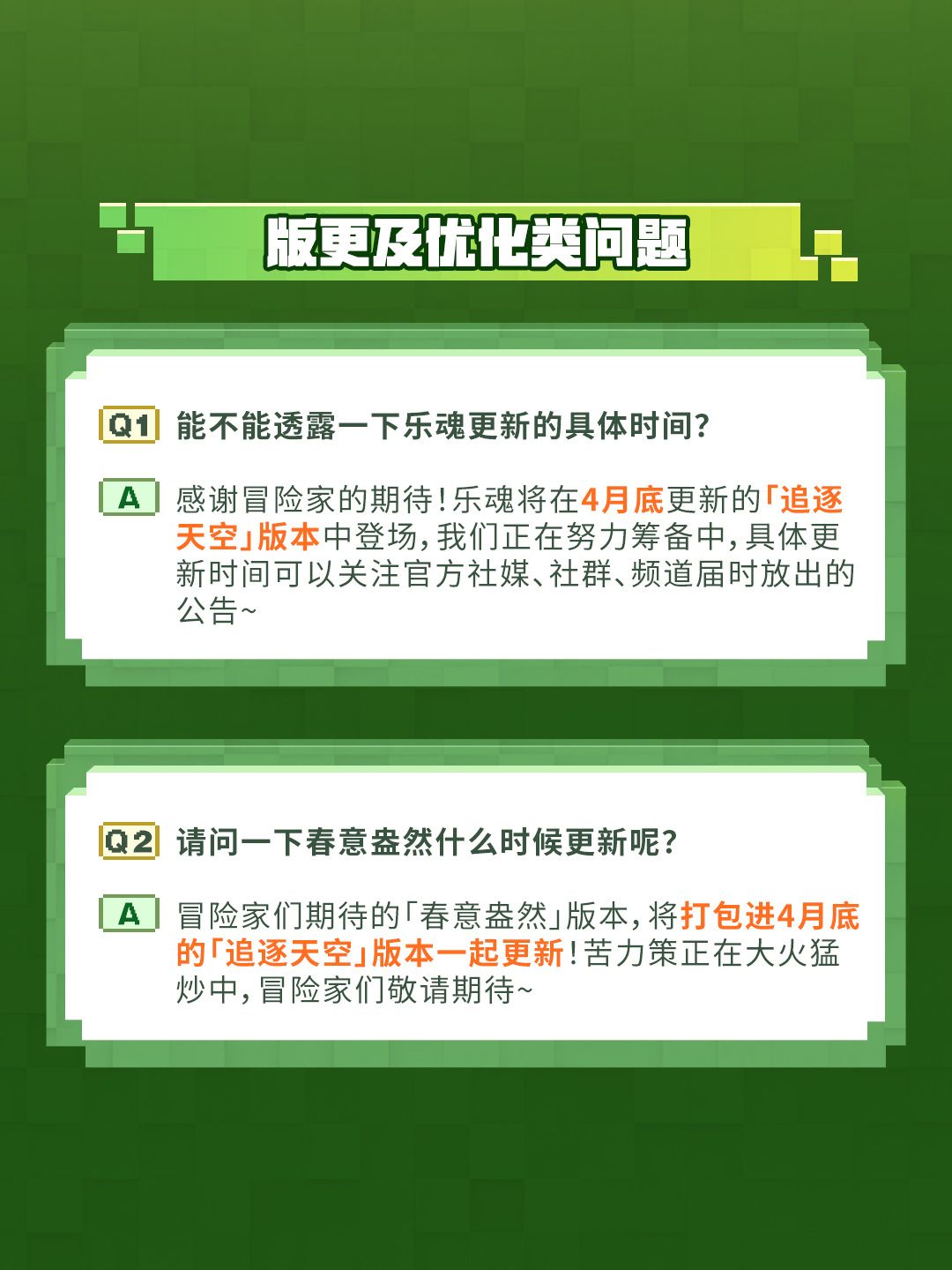 方块优化月QA公开!4月底版本更新信息释出