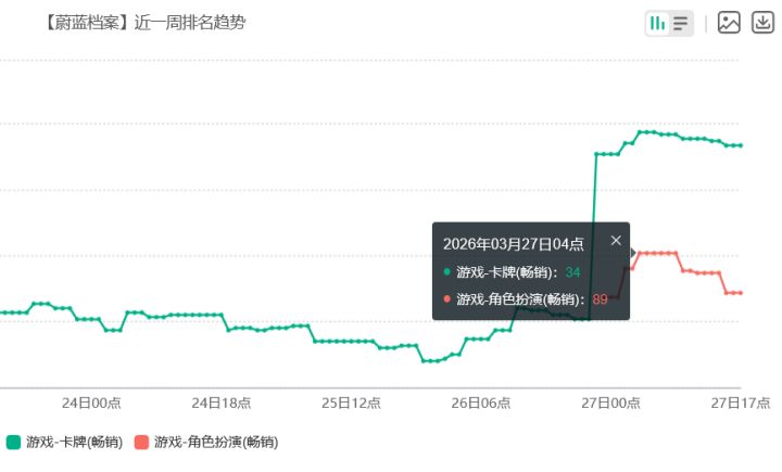 3月27日流水表现如图,虽然没能回暖至游戏畅销榜、总榜畅销榜,但也重回了部分细分榜单