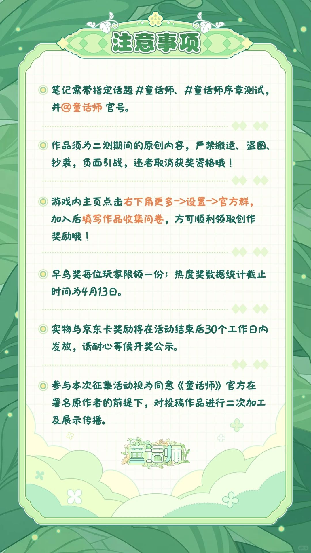 《童话师》序章测试·小红书全民创作征集正式开启!活动详情请看笔记图片所示哦~