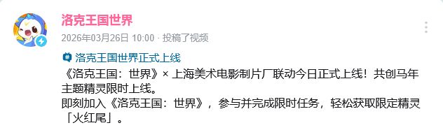 方工作室群开发的大世界精灵养成游戏《洛克王国:世界》3月26日正式公测,与上海美术电影制片厂(简称上美)的联动同日上线