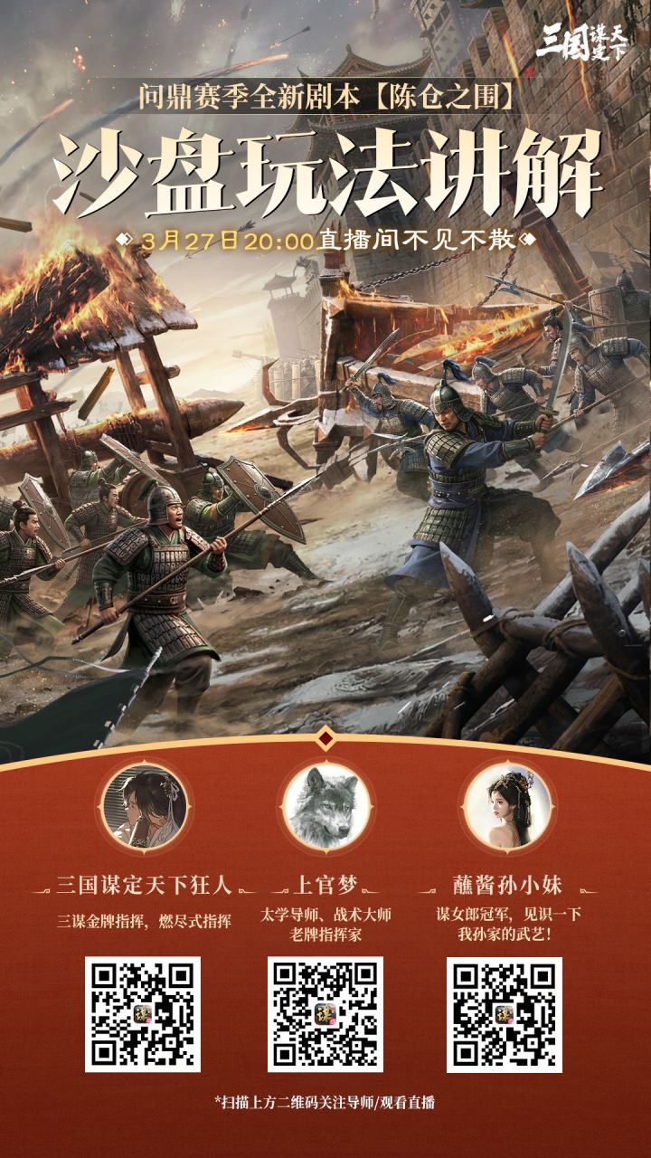 3月27日今晚20:00,锁定同盟太学导师直播间,为你深度拆解问鼎赛季全新剧本「陈仓之围」玩法,抢先掌握致胜秘籍!