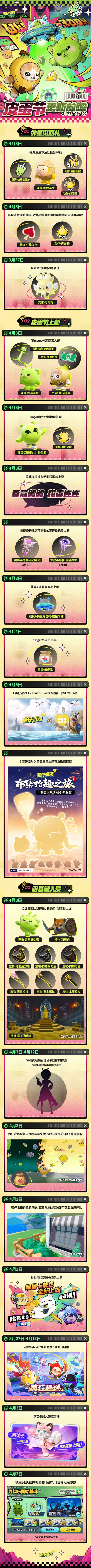 4月3日皮蛋节版本「揪出哈基咪」正式开启,全新猫meme外观上线,各玩法猫咪入侵!