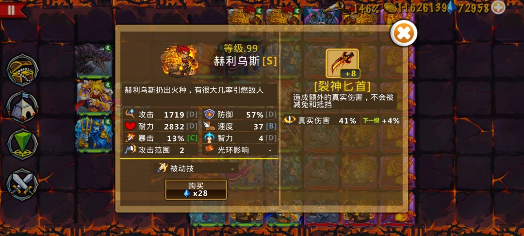 今天运气很不错,竟然抓到四个低钻的野生火神,三个28钻石的火神,一个20钻石的火神,甚至其中有两个是在同一回合刷出来的,可惜就算全部解雇了也没有涨寻宝率,不过总比没有好。