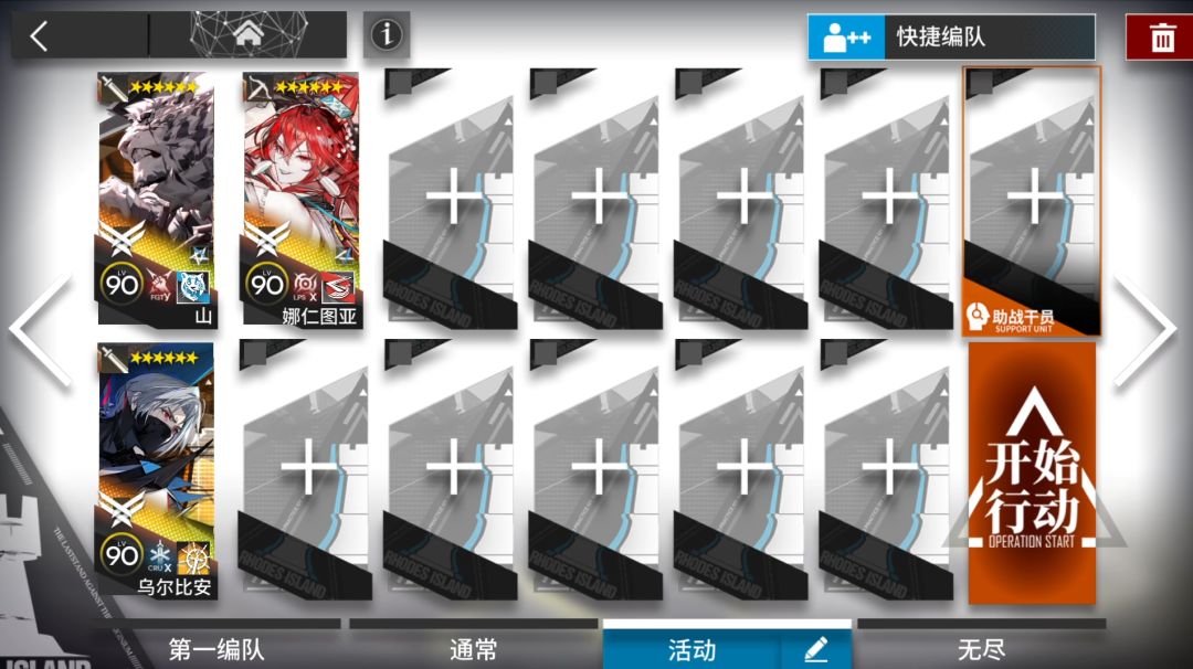 依次部署山挂机。下面是前几关通用配置,上场其中1-3人即可。