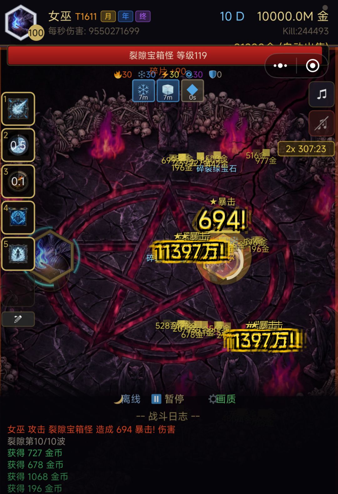 基本是首饰做出来3个 触发斩杀腰就会跟我一样90亿伤害左右 平时不触发也有70亿