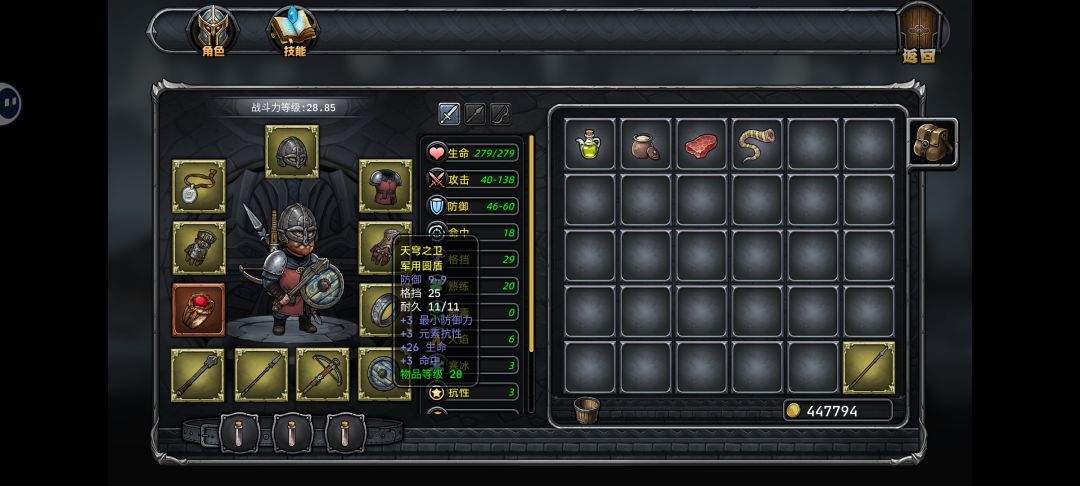 1.三件武器尽量都保留有击晕属性的,没刷出来可以先用基础属性较高且有最低和最高攻击力加成的,然后盾拿有生命和高格挡的就行。补充一下熟练属性只有武器才有,要你一直用这件装备(中途换了更好的装备要重新刷新装备的熟练值)刷怪属性值才会增加,熟练越高攻击造成的伤害会越偏向你的最大攻击力取值,熟练值上限是30点满。主武器说完然后就是其他的几件防具和饰品,都是优先选择有生命值属性的,毕竟有血量才有输出,而且这游戏目前只能玩一图,所以伤害是够的,不用刻意去拿那点输出属性。我目前还差几件装备没刷出来,整完就毕业了。