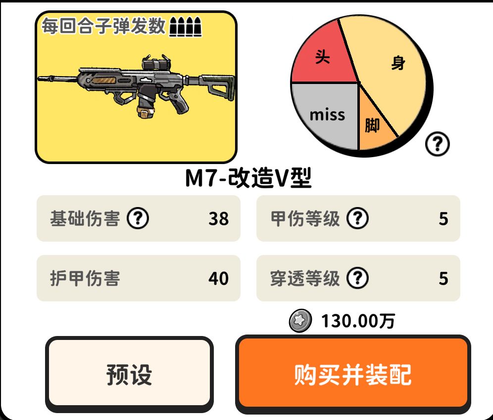满改M7:特点是属性比较均衡,兼具高伤害,命中概率为: