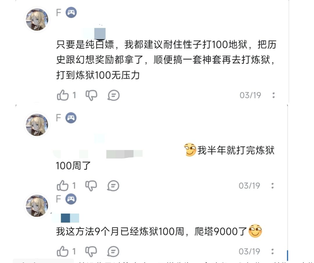 前期就是已经玩了一两周到前十周左右。同样过了入门期之后,可以先看看大佬们是怎么玩的,又出了一些新玩法(参考文献3-9)。然后就可以看前期攻略了,萌巨佬新出了个手把手带萌新入门系列攻略(参考文献10-34等),入门期到前期都能看,对于萌新来说是一大福音,如果看完参考文献1还不知道怎么玩的,看这个系列攻略照葫芦画瓢就行了,能少走很多弯路。主要就是先领资源(参考文献10),然后玩(参考文献11-34),如果看完这些还不会玩可以看萌佬主页接着照葫芦画瓢,其中一周目无资源拿下挑战2(参考文献18-20)和武昌(参考文献29)都是比较难的,这个系列攻略相当于把参考文献1中参考文献14萌佬写的《新人入坑圣三必做的几件事》详细化了。当然萌巨佬这个攻略是无内购攻略,后面资源够培养内购的时候还得结合参考文献1内购培养的攻略。除此之外,前期又多了一些科普的攻略(参考文献35-43)。关于前期历史线幻想线的选择,大佬们又开发出一个白嫖玩家新玩法(参考文献44),有大佬用此玩法,6个月就通关炼狱100周(图1),效率还是很高的,在参考文献1中的参考文献21练果方法中也有介绍。