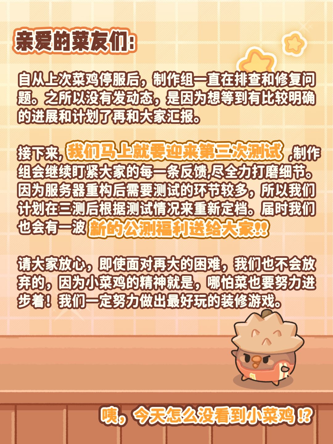 接下来很快就是第三次测试了!本次测试将重点验证优化后的稳定性和新内容的体验。我们正在加紧准备测试版本,也会继续在三测期间持续盯紧反馈内容,在正式上线时给大家一个更舒适的游戏体验。