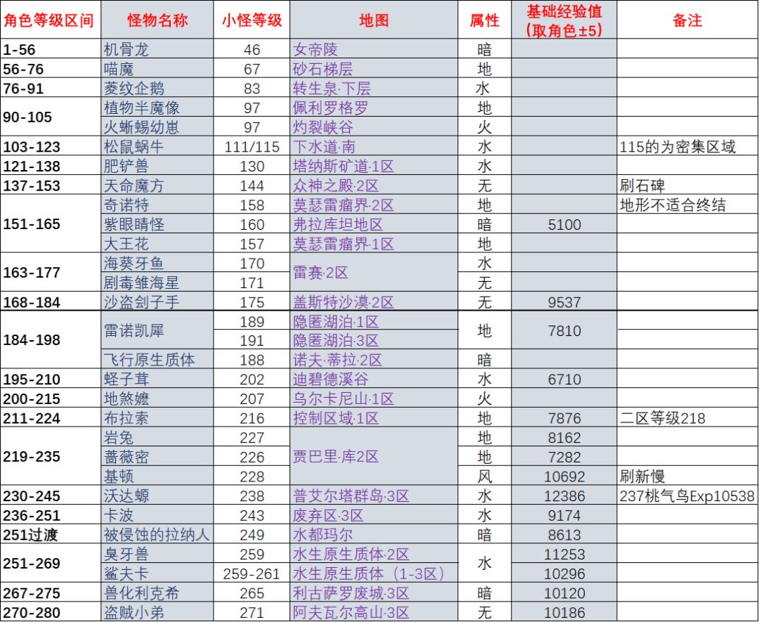 小怪升级路线自用简洁版(1-280)