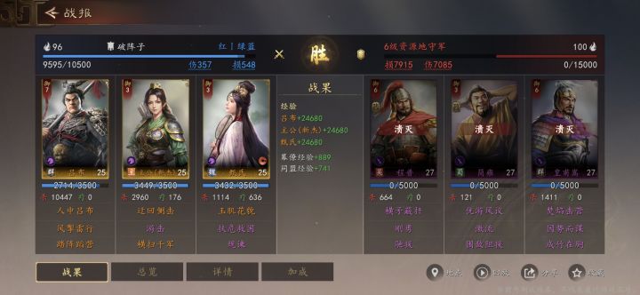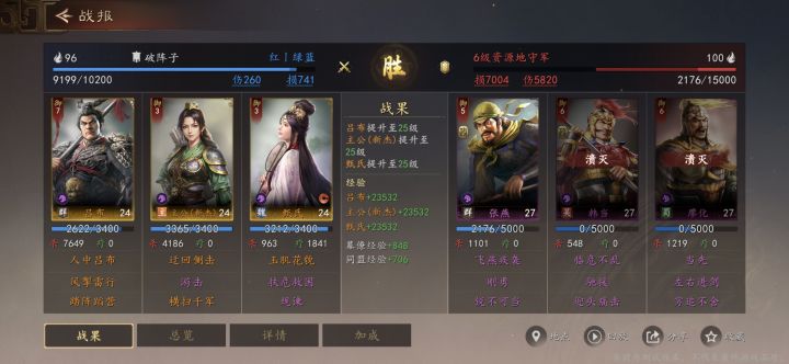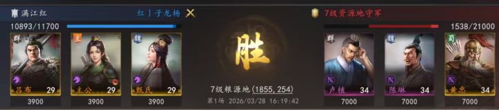 吕布输出+主公的环绕输出 可以很好的打过绝大部分土地 再配上甄氏的回血战法 保证续航可以最大程度上保证开荒的战损