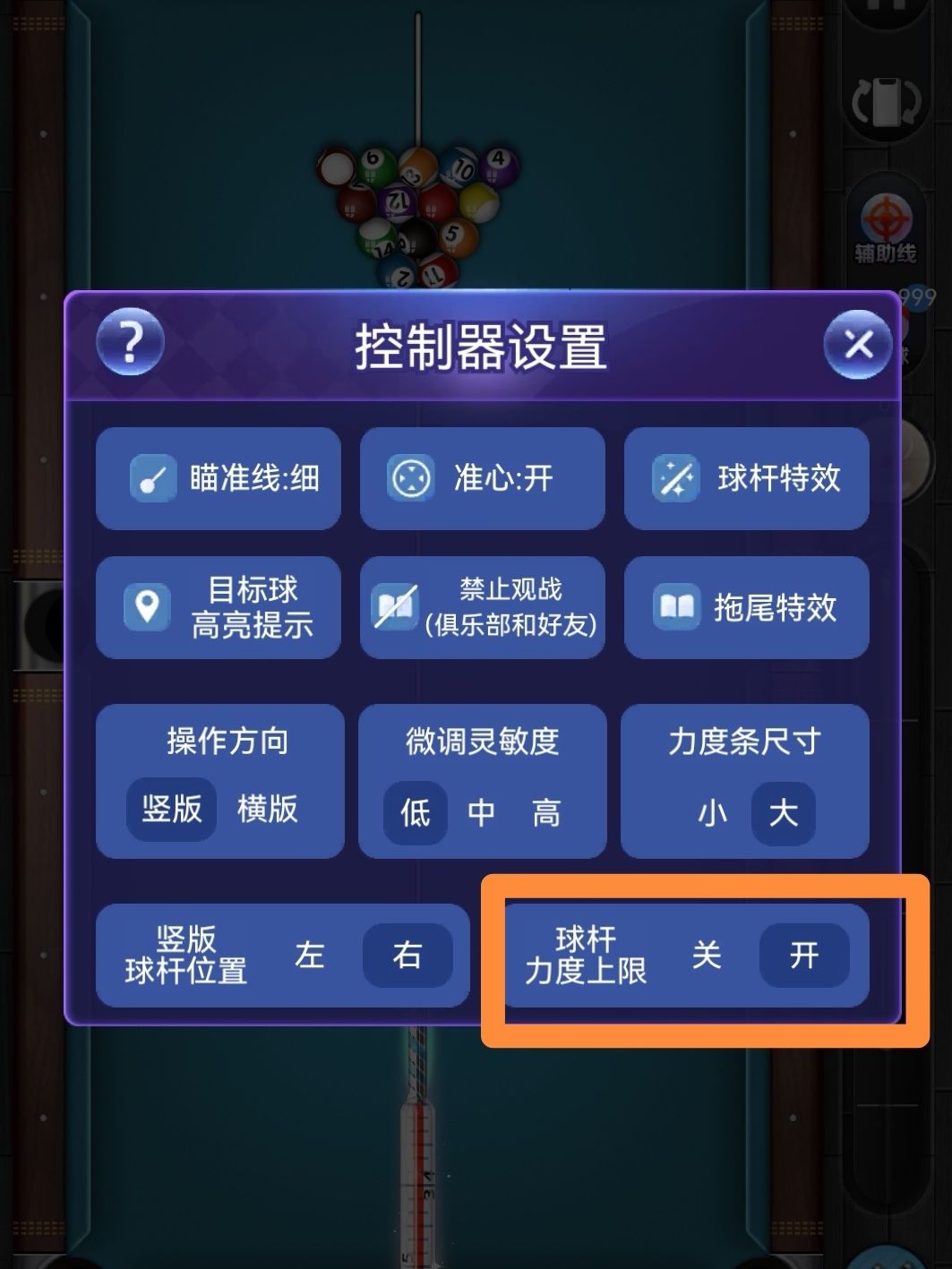 开——可以设置球杆力度上限