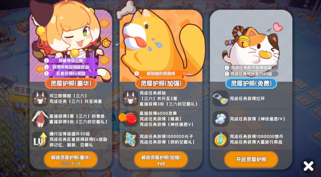 1-免费档位,反正是白送的,萌新缺梦币推主线,缺拉环抽角色,推荐值得努力做一下,32抽接近于半个月卡的量了(因为这是45天的)。