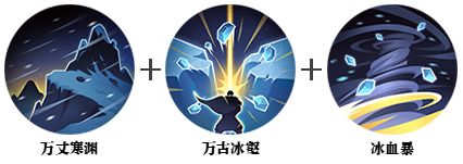 【万古冰壑】:清杂关键技能,倍率很高的铺地形AOE,附属被动击退技能对冰嵌上的敌人附带50%最大生命穿伤和一次个性