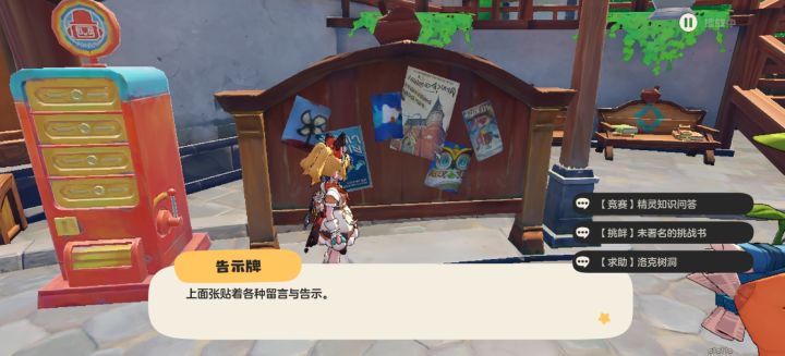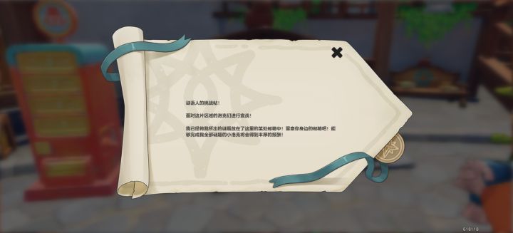 商业街中心广告板可以接到一封挑战信,然后我们步行至商业街东入口附近可以看到红色信箱,互动可以看到神秘的信,对话可知为三个考验这里不做谜语人了直接将地点列出: