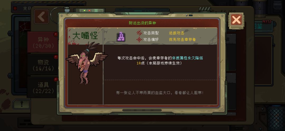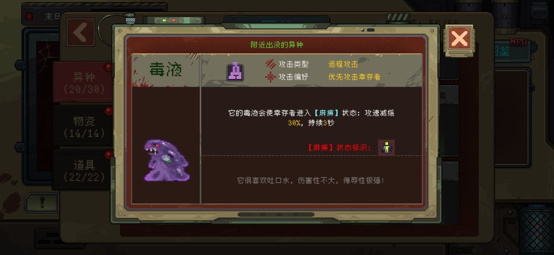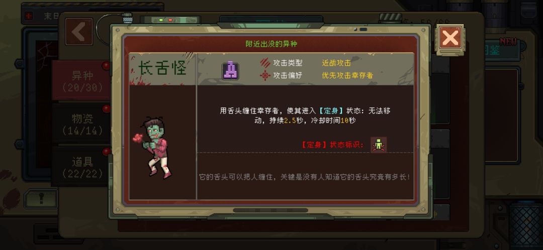 这次难度跨度太大了。选择了同生共死,核心感染区,A级感染。开了部分(应该)A级感染者图鉴。可以看出A级感染者明显针对近战。后期怪血量起来腐肉投手伤害巨高,还有长舌怪控2.5秒。近战小人敢贴脸就是2秒极速蒸发。