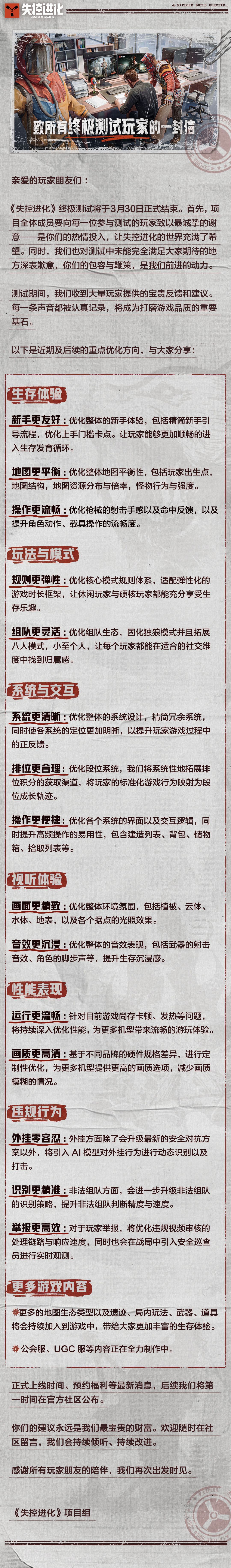 感谢你们这段时间的陪伴,也感谢你们留下的每一条反馈。对我们来说,这些声音都很重要;对《失控进化》来说,它们也会变成后面继续优化和打磨的方向。