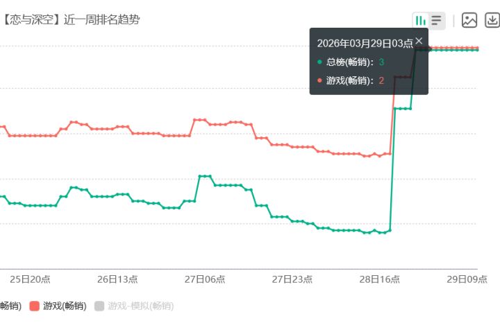 据悉游戏于3月28日更新后,开启夏以昼全新限时卡池万鬼行绝,根据七麦数据显示,游戏在畅销榜排名大幅上升,目前流水已冲至总榜畅销榜第3位,游戏畅销榜第2位,游戏畅销榜后续有望超越王者荣耀实现登顶,