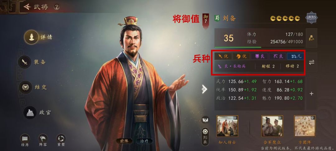 将御值与兵种