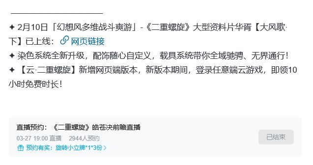 📉最近又有瓜吃了家人们,由英雄游戏旗下潘神工作室自主研发的高自由度幻想冒险RPG《二重螺旋》,其皓苍决前瞻直播于3月27日晚开启,最终预约人数不足三千人,数据表现不及预期