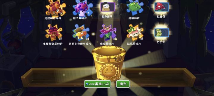 今天抽了个紫色宝箱688,第一遍没出什么,决定再抽一遍688,结果第二遍就给我出了五个树根碎片!