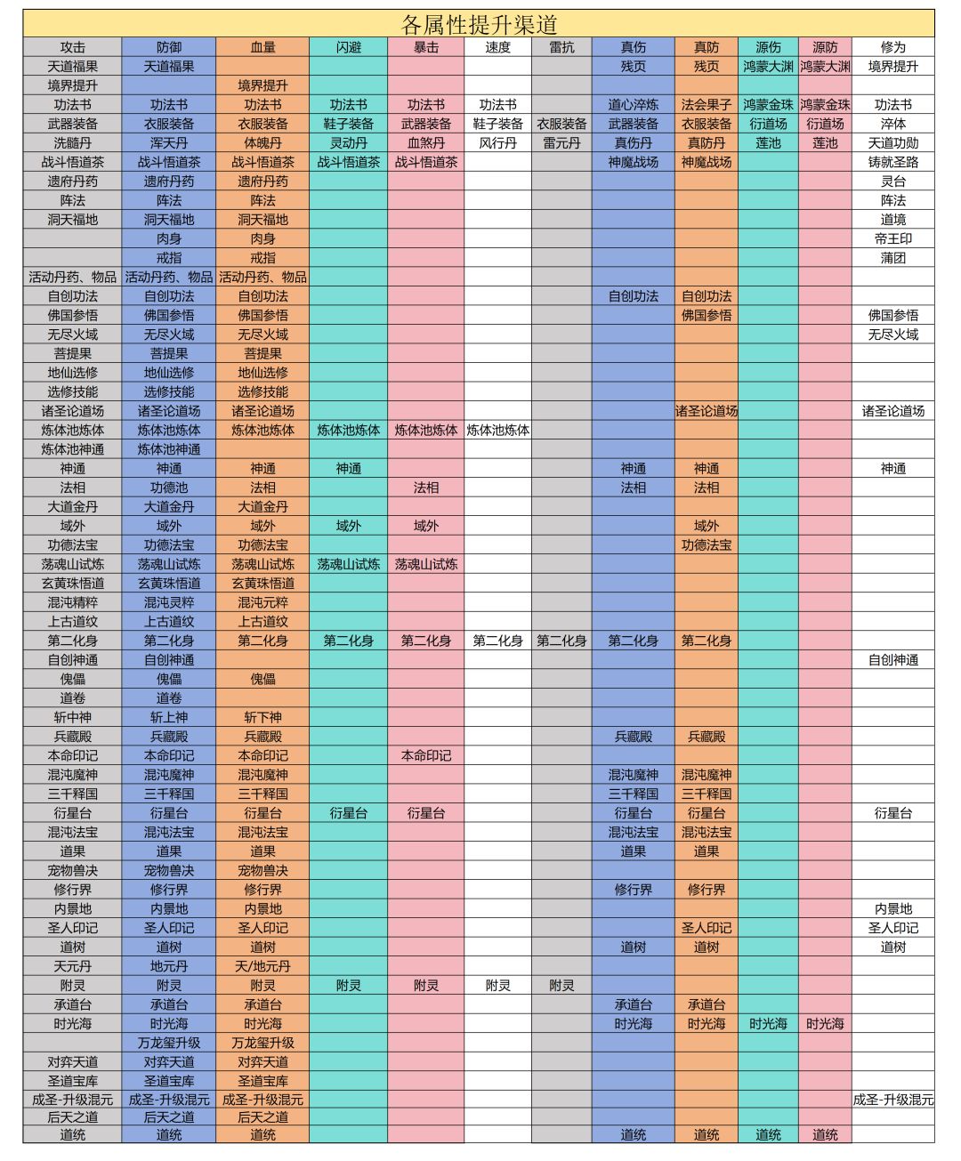 各属性提升方式(根据游戏版本更新实时更新数据)