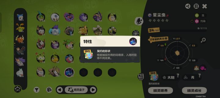 偶然抓了一只星尘虫,用捕光球抓的,不知道特性是什么效果