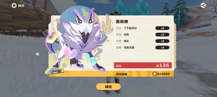 第一只异色炫彩白狼王,别再用高级球浪费时间了,捕光才是刷异色的答案,捕光8w金币就可以换。