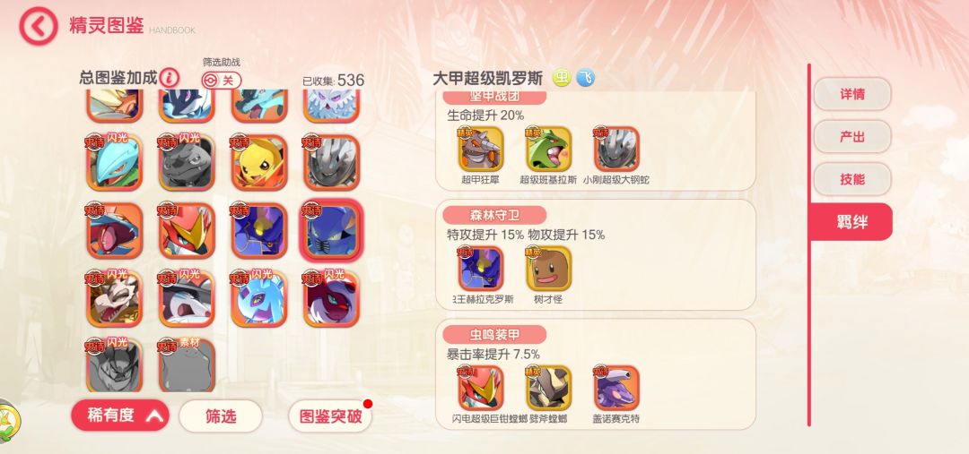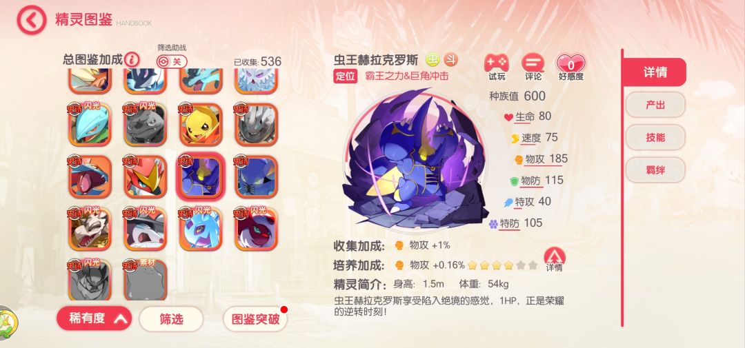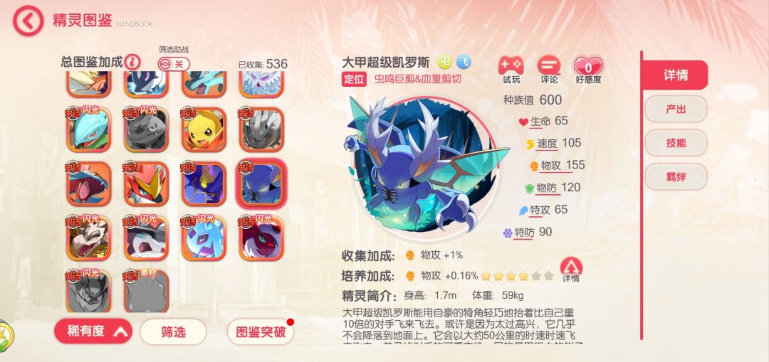 - 定位“虫鸣巨剪&血量剪切”:种族值600(图5),物攻155+速度105,专切后排压血线,配“坚甲战团”羁绊(生命+20%叠坦度,图8),站场如磐石!