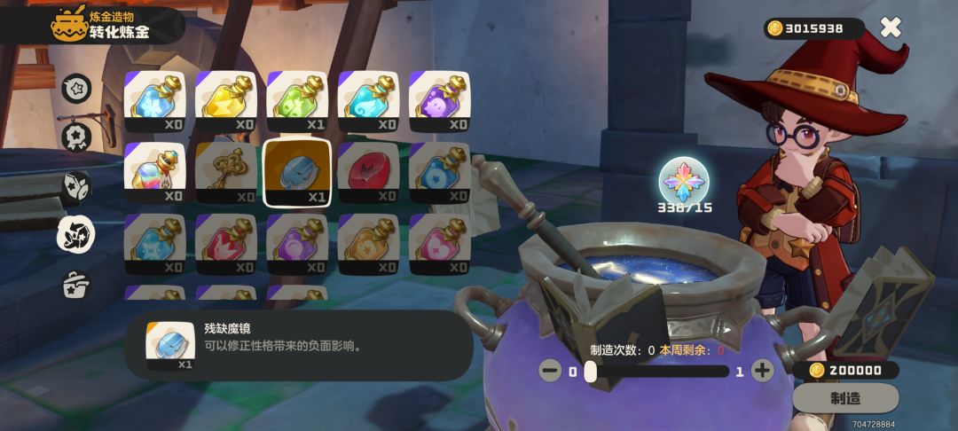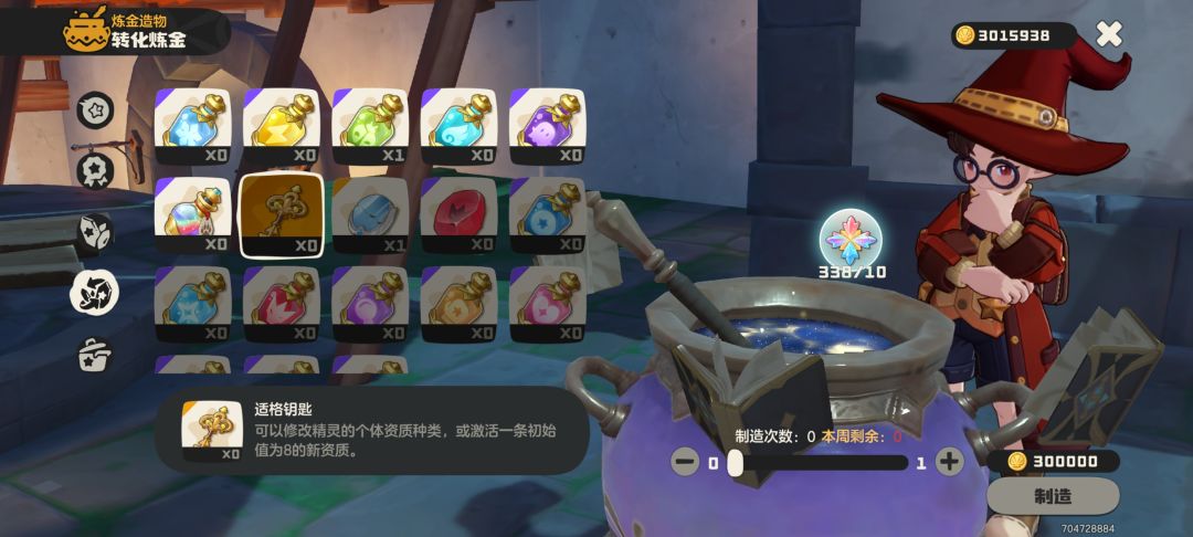 4每周可以通过炼金炉合成一把适格钥匙和残缺魔镜,用到的只是许愿星和洛克币,这相当于是白嫖。这个福利每周不要忘了。
